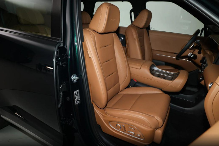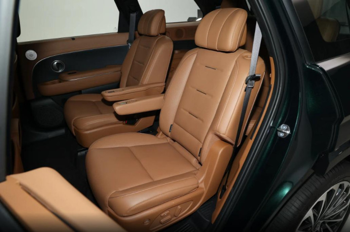 座椅方面, 除了入门版车型的座椅采用了仿皮才行进行包裹,其余版本车型均使用了真皮面料包裹,前排和第三排座椅电动调节都是标配,但中排座椅电动调节却只有顶配才有。不过三排座椅加热功能都是标配,前排座椅通风也是标配,只有顶配给了前两排座椅按摩功能。这种设计既满足了家庭用户对多功能性的需求,也使其在商务接待场合中表现出色,为乘客提供了更为舒适的乘坐体验。